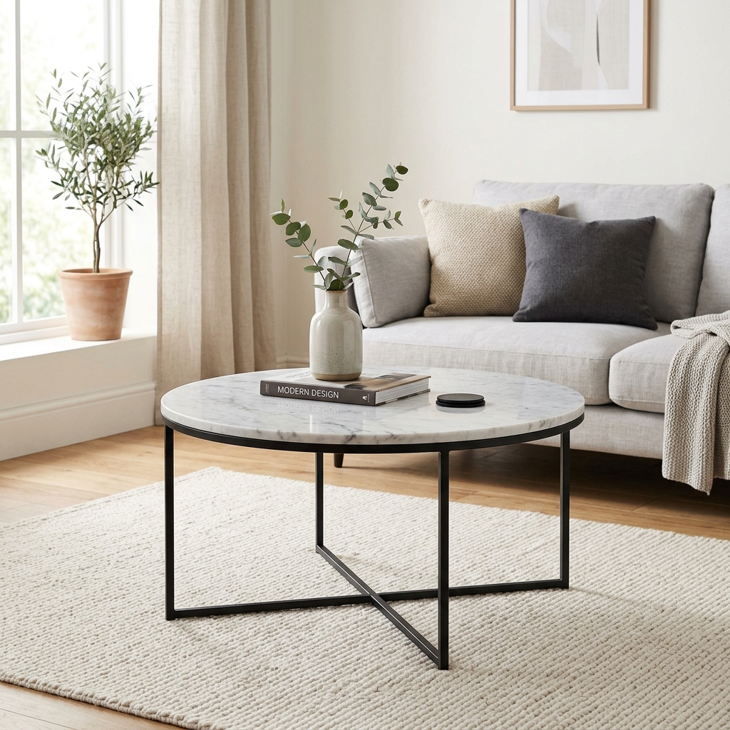 Bàn trà mặt đá sang trọng, chống xước, khung hợp kim.